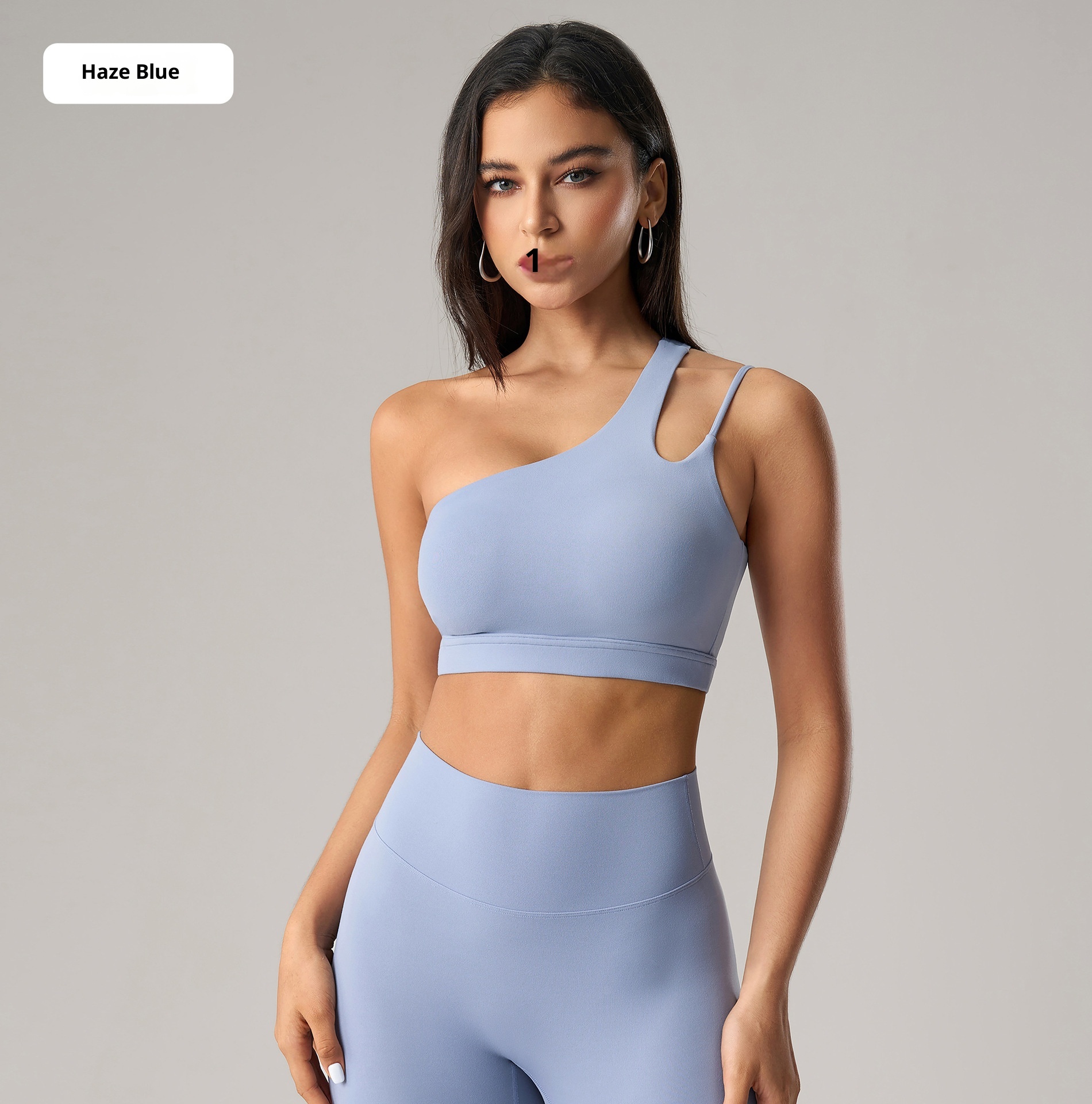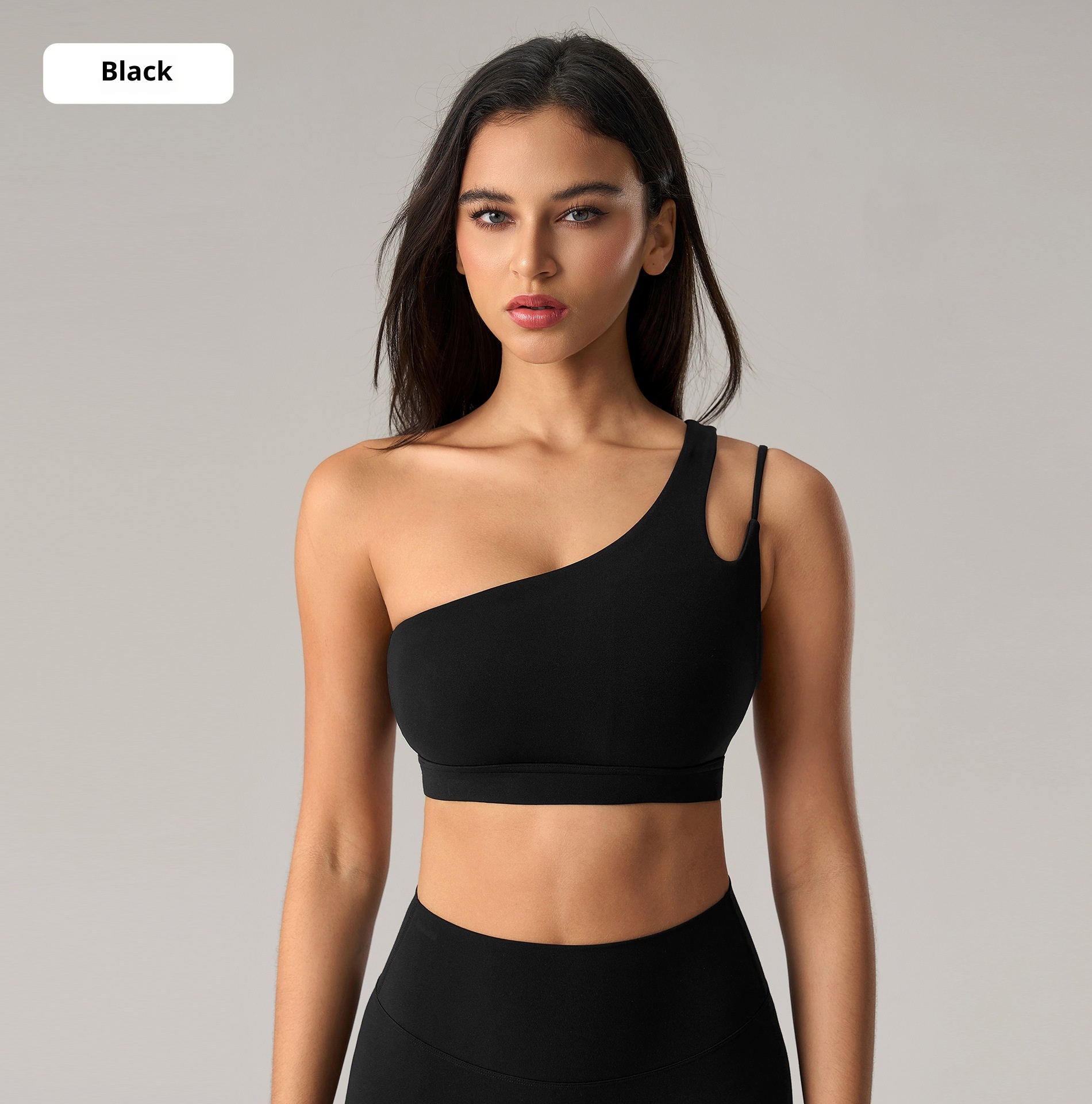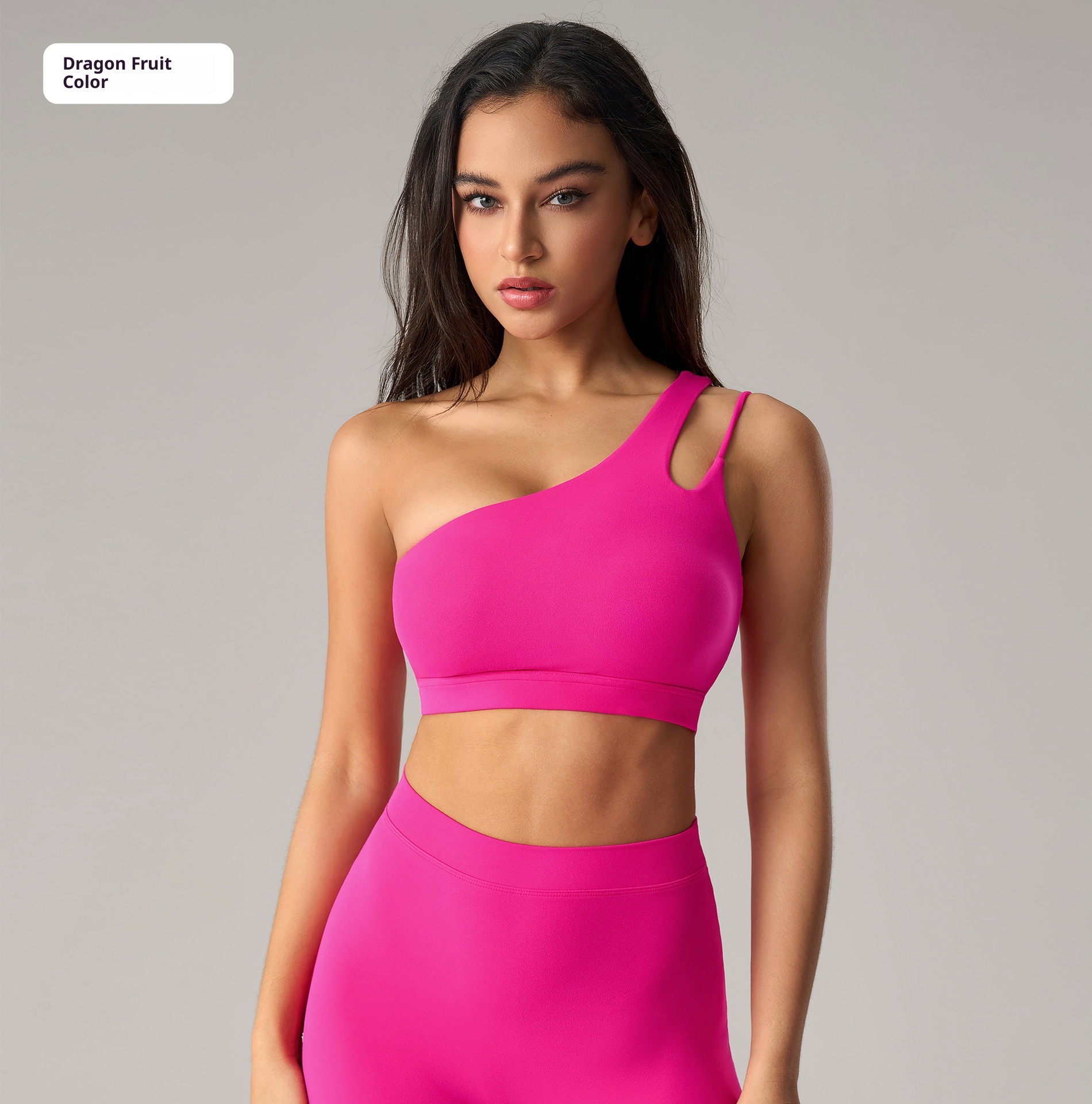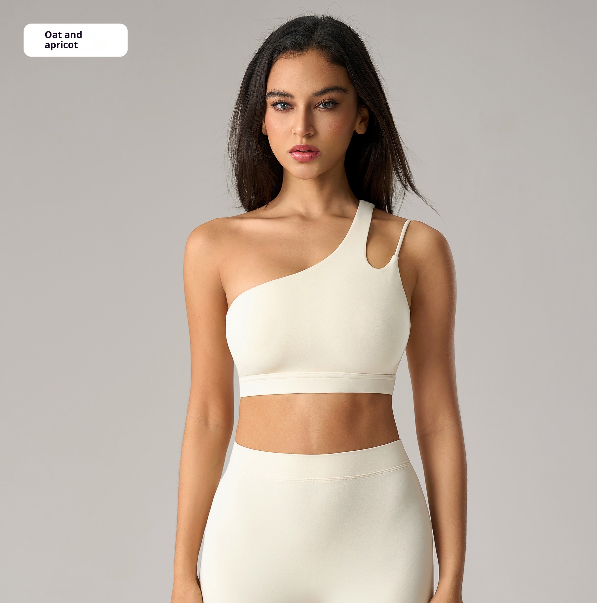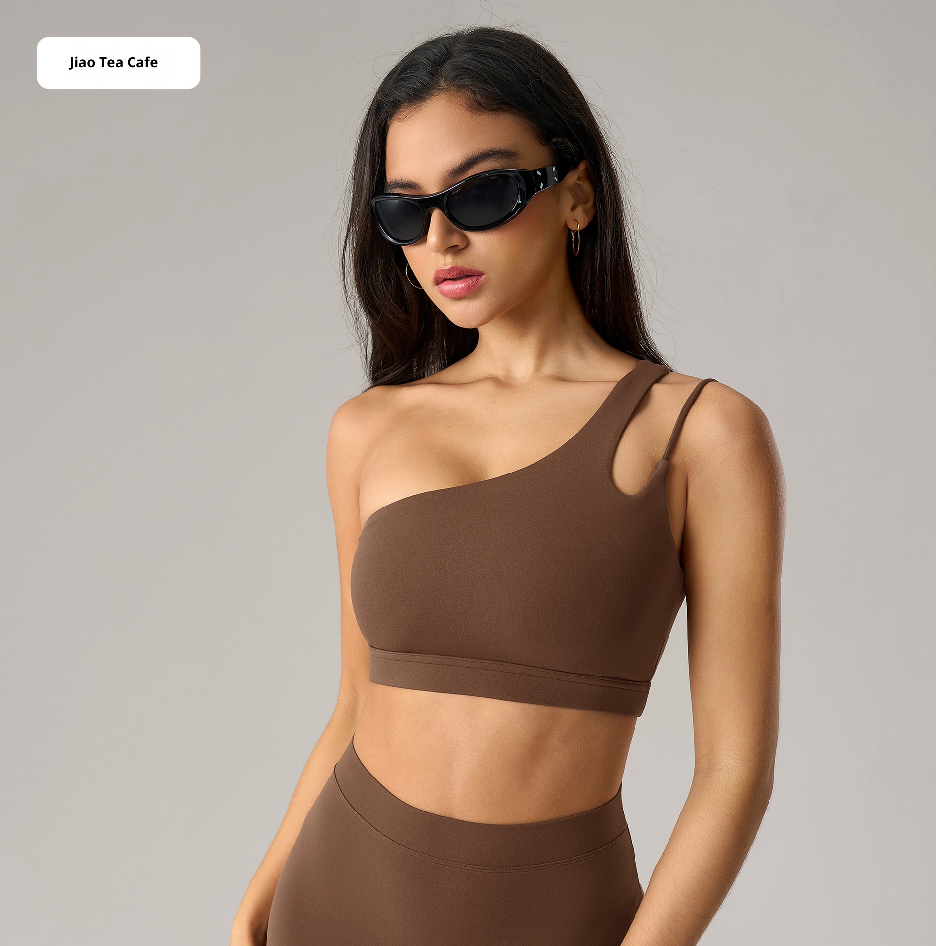 001 European And American Cross-Border One-Shoulder Yoga Beautiful Back Sports Bra Irregular Shoulder Running Fitness Vest