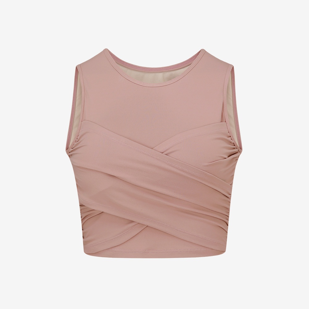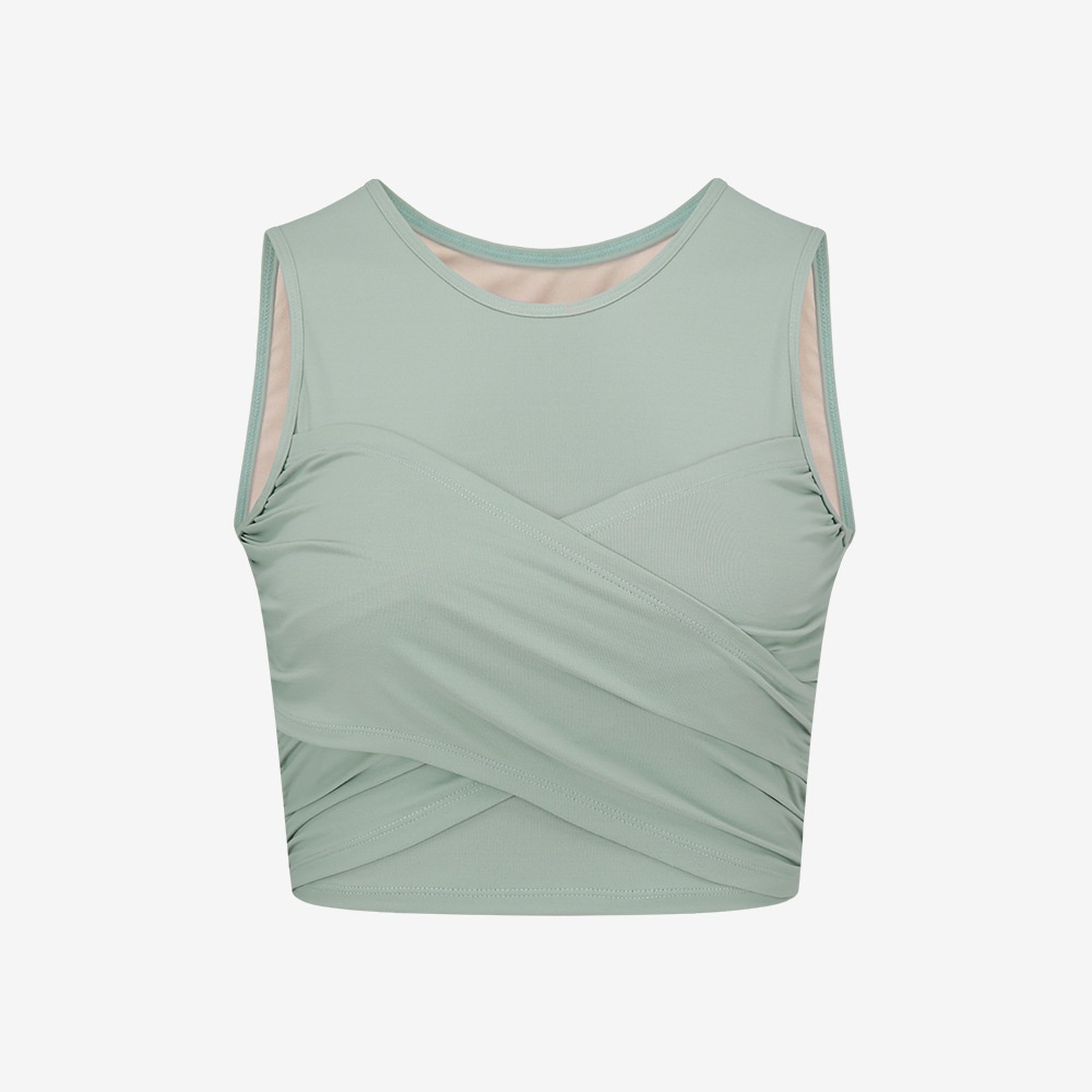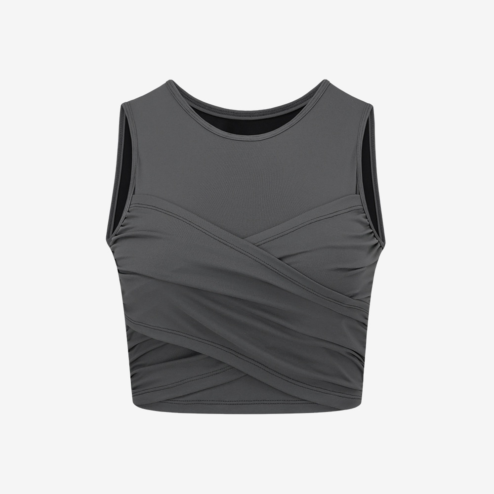 001 Summer New Short Sports Vest For Women Sleeveless T-Shirt Fitness Top Cross Ruched Slim Fit With Chest Pad Yoga Wear