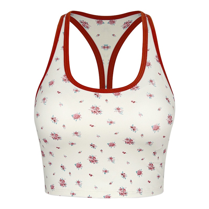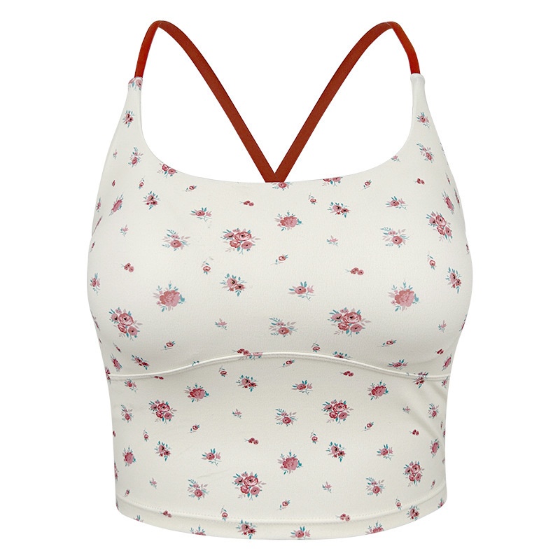 001 Zhouyou New Yoga Wea Fo Women Reto Floal Spots Camisole Vest Fitness Outewea Innewea Slim Fit Slimming