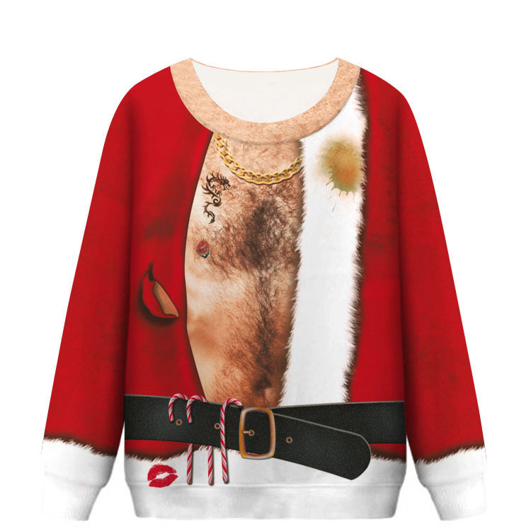 2023 Winter New 3D Digital Printing Men's Round Neck Casual Loose Sweater Pullover Hoodie
