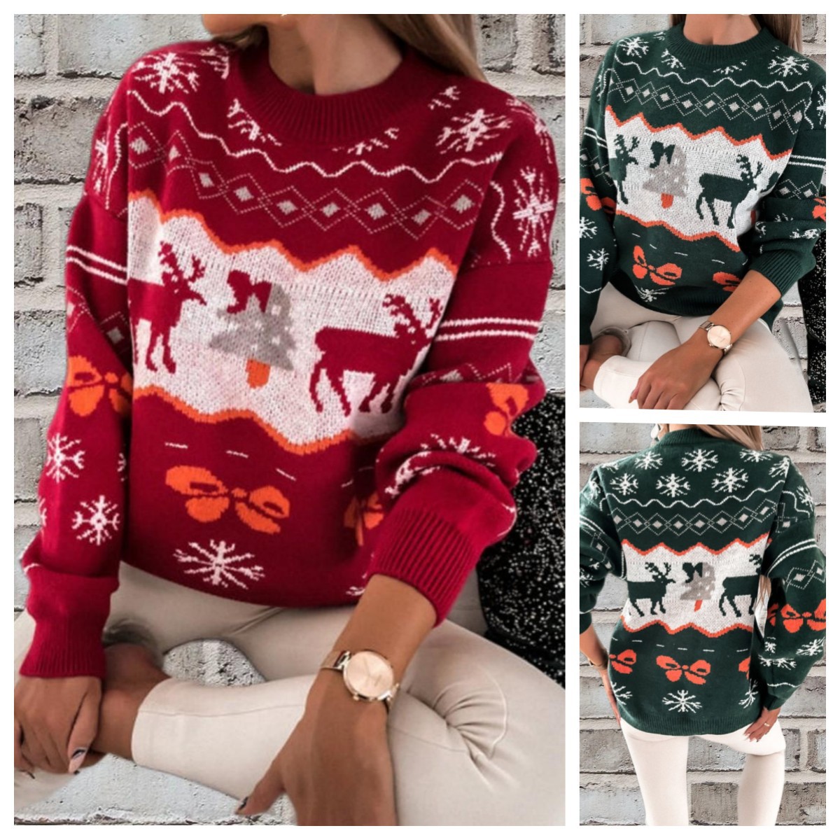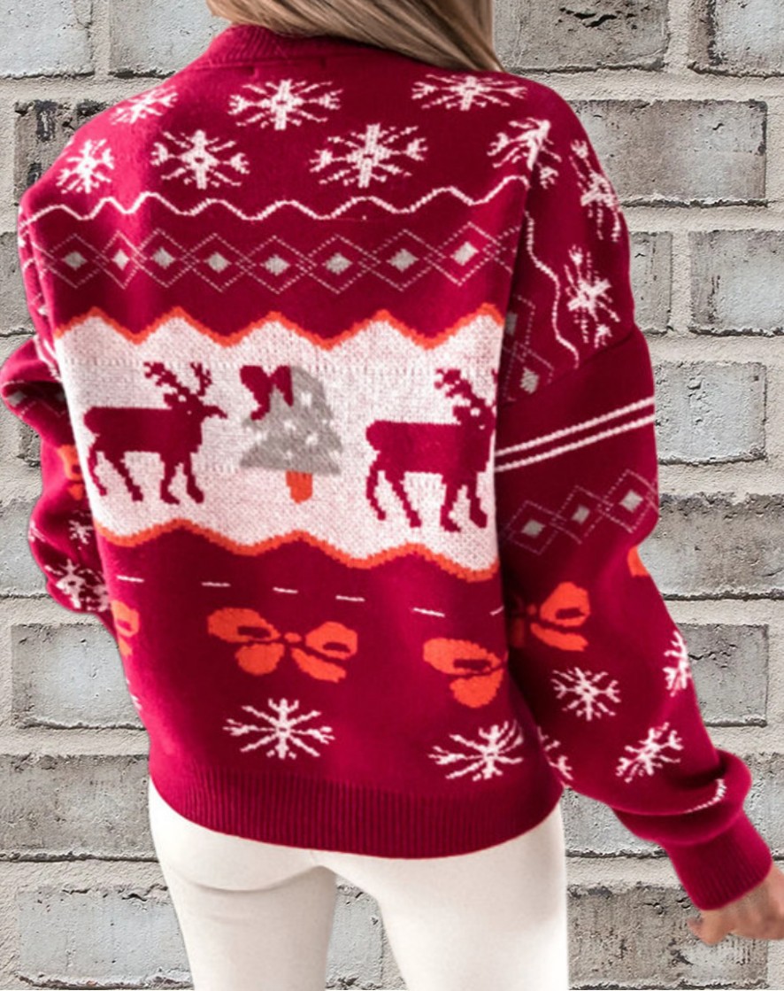 2024 Women's Christmas Jacquard Loose Round Neck Long Sleeve Knitted Sweater
