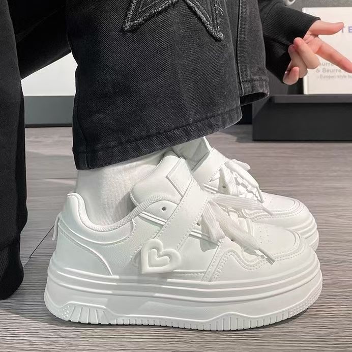 2025 New Ins Lightweight Breathable Girly Thick-Soled Heart-Shaped White Sneakers For Female Students, Versatile With