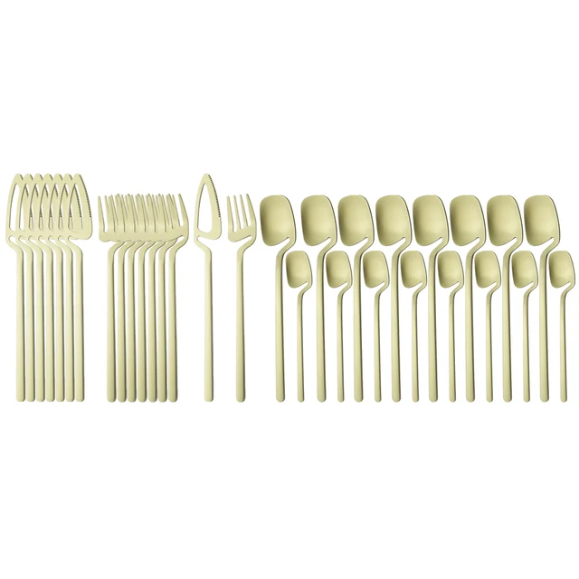 32Pcs Matte Black Cutlery Set Knife Fork Spoon Dinner Tableware 304 Stainless Steel Dinnerware Bar Party Flatware Silverware Set