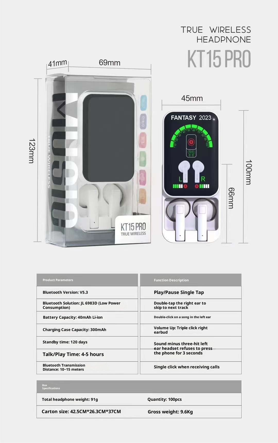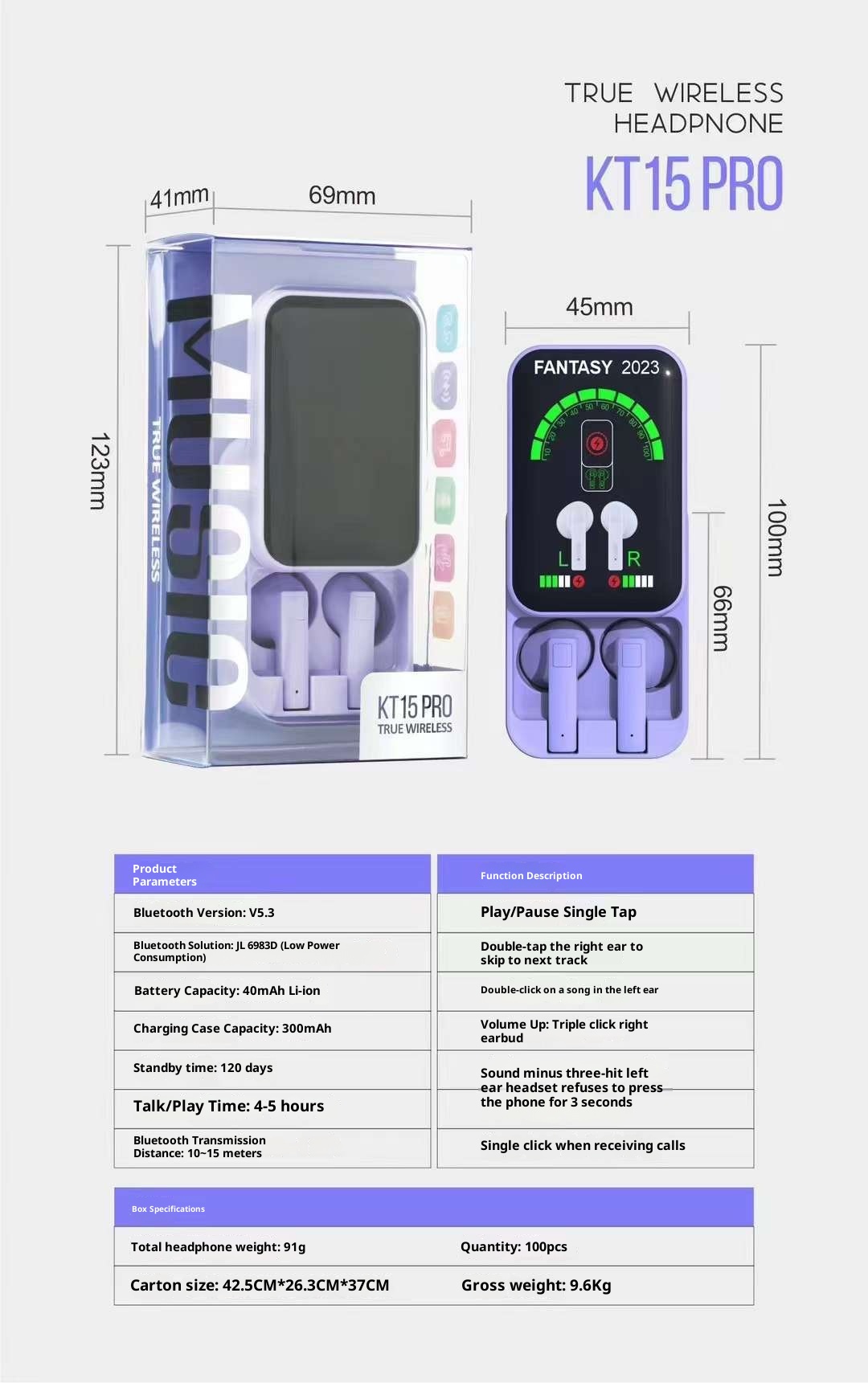 Brand:other,Transmission Range:10,Functionality:Digital Display Screen,Bluetooth Protocol:5.3,How to use:Earbud style,Is it single or double ear?:Bilateral Stereo Sound,Color:M90, M88, KT15pro Black, KT15pro White, KT15pro Rose Red, KT15pro Purple,Main downstream platforms:, , , ,Main sales regions:Northeast Asia, Middle East,We have authorized private labels available:yes,Is it exclusively for cross-border export supply?:yes,Customizable:Support,Is it a patented source product?:No,Mold Type:Private Model,What type of chip is it?:Jerry,Battery life:4-8 hours,Year/Season of Release:2022,Style:E-sports Gaming,Waterproof performance:IPX3,Item Number:m,Material:Plastic