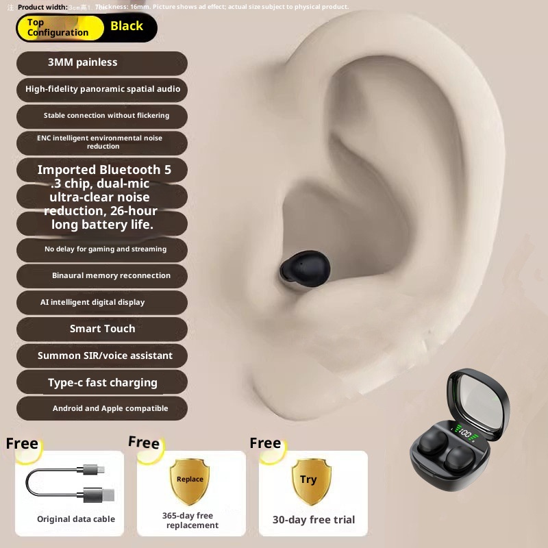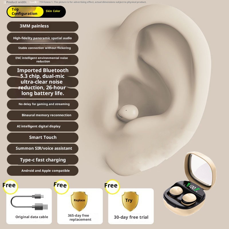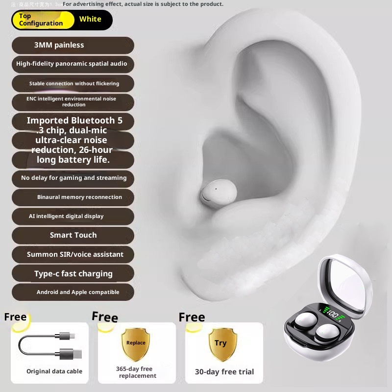 3c Sleep Bluetooth Earbuds True Wireless New Mini Ultra Small No Flashing Light Noise Cancelling In-Ear Unisex Earphones