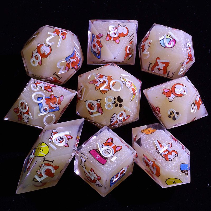 9 Polyhedral Dice Sets D And D Corgi Cream Tea For Dungeons Dragons RPG
