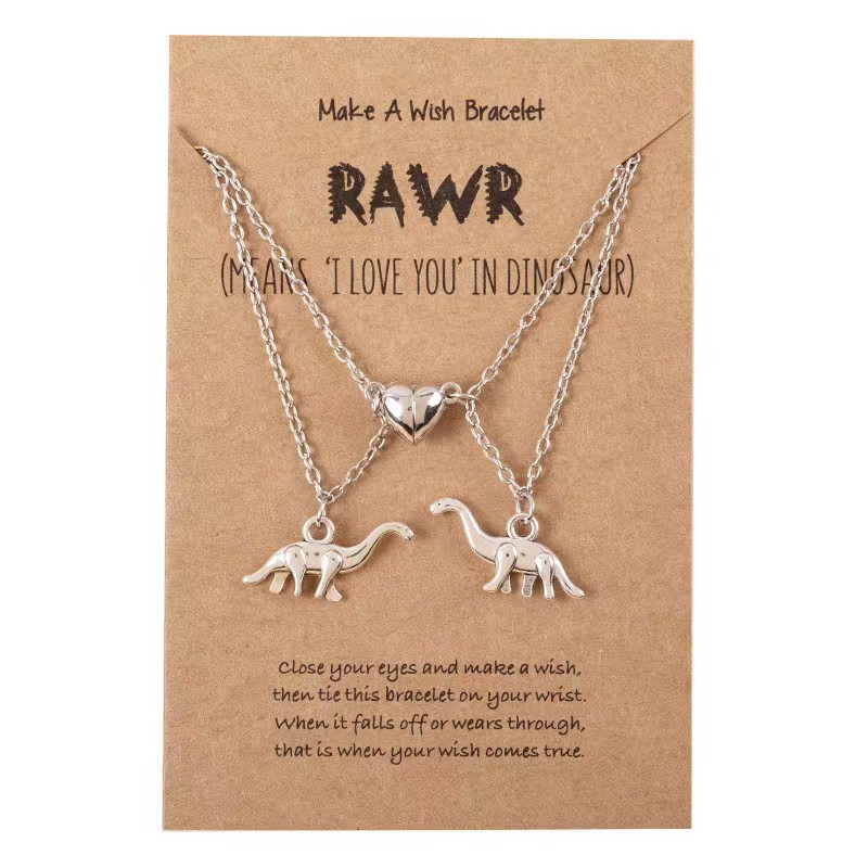 A niche design alloy dinosaur pendant with heart shaped magnetic buckle that attracts couples, a necklace for both men