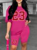 Women's Clothing Solid color all match digital printing two piece short sleeved shorts loose casual spring and summer