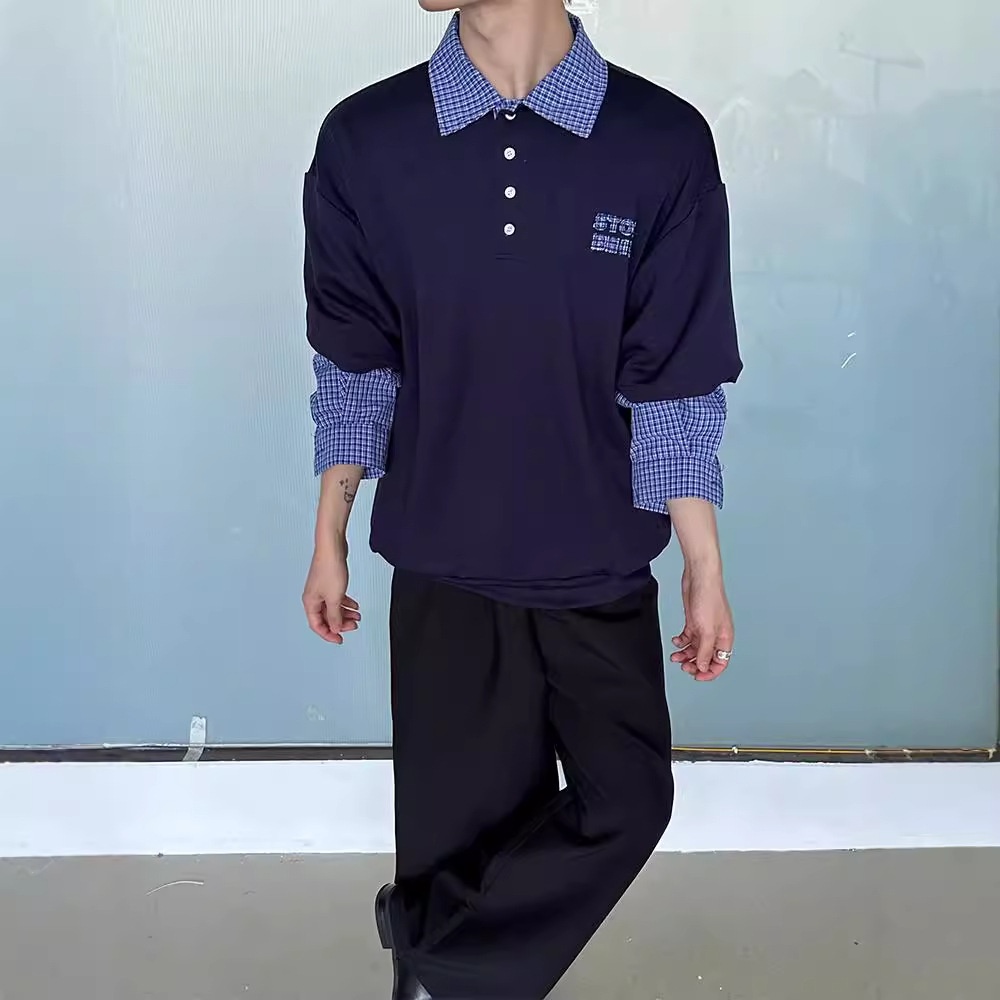 Product Source Category:In Stock,Style:Hong Kong Style,Sleeve Length:Long Sleeve,Design:Loose Fit,Pattern:Color Blocking,Special craftsmanship:Printed/Dyed,Thickness:Average,Suitable for the season:Autumn,Bargain Category:Youth Fashion 18-24 Years Old,Item Number:W81,Brand:other,Year/Season of Release:Autumn 2024,Fabric Name:Synthetic Blend Fabric,Content of the main fabric components:96% and above,Main fabric composition:Polyester Fiber Dacron,Applicable Scenarios:Everyday,Inventory Type:Complete order,Color:Gray, blue,Size:M,L,XL,XXL,XXXL,Main downstream platforms:, , , , Independent Station, ,Main sales regions:Africa, Europe, South America, Southeast Asia, North America, Northeast Asia, Middle East,We have authorized private labels available:yes,Is it exclusively for cross-border export supply?:yes,Clothing Style Details:Intarsia,Original Design Source:yes,Is there a quality inspection report?:No,Quality Inspection Report Number:8,Material function:No ironing needed,Product Category:POLO Shirt