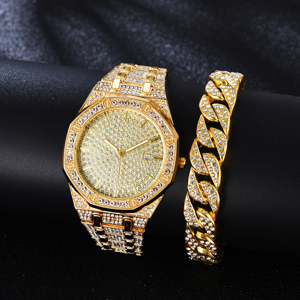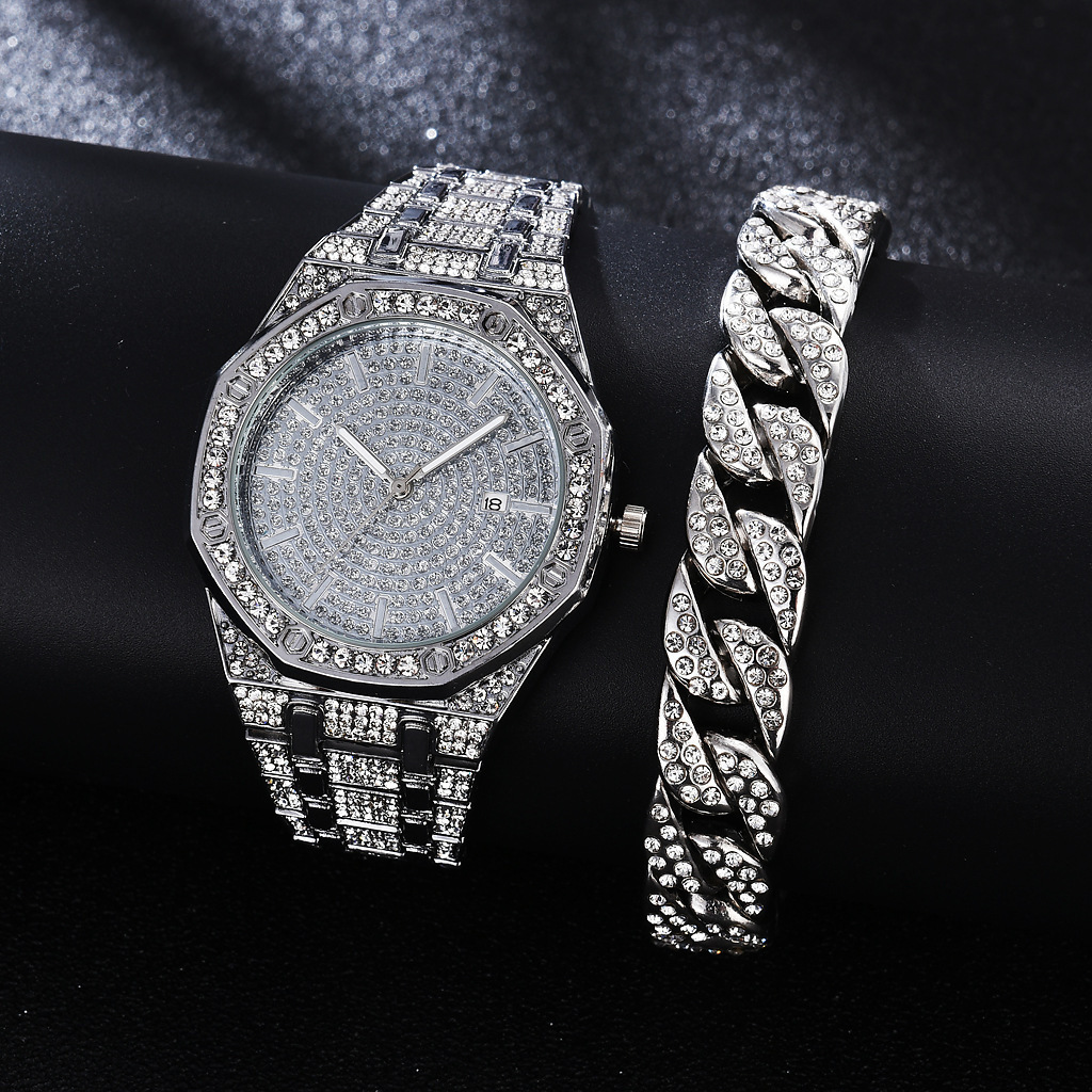 Business fashion trend Diamond Octagonal dial quartz watch + diamond bracelet (2pcs/set)