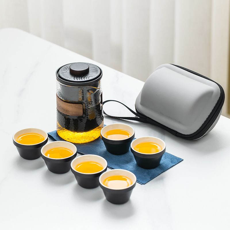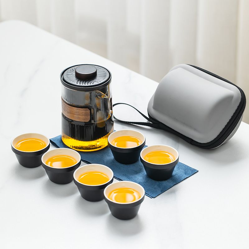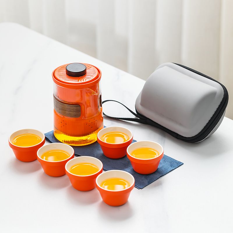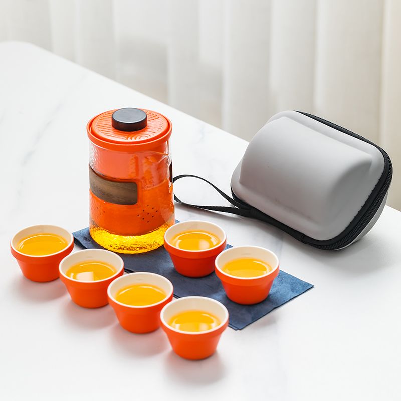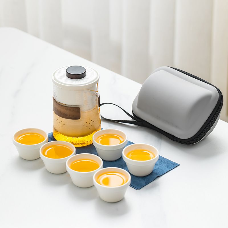 Ceramic tea set travel kit, glass tea set, tea cup, quick cup, Chinese style, simple full set, storage, camping, simple and heat-resistant