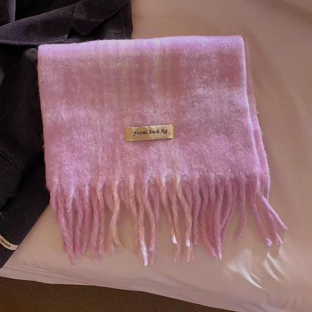 Checkered wool fringe Korean version premium winter mohair warm unisex scarf