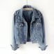 ChicShe Women's Denim European Style Plus Size Beaded Rhinestone Coat Trendy Student Light Blue Loose Jacket