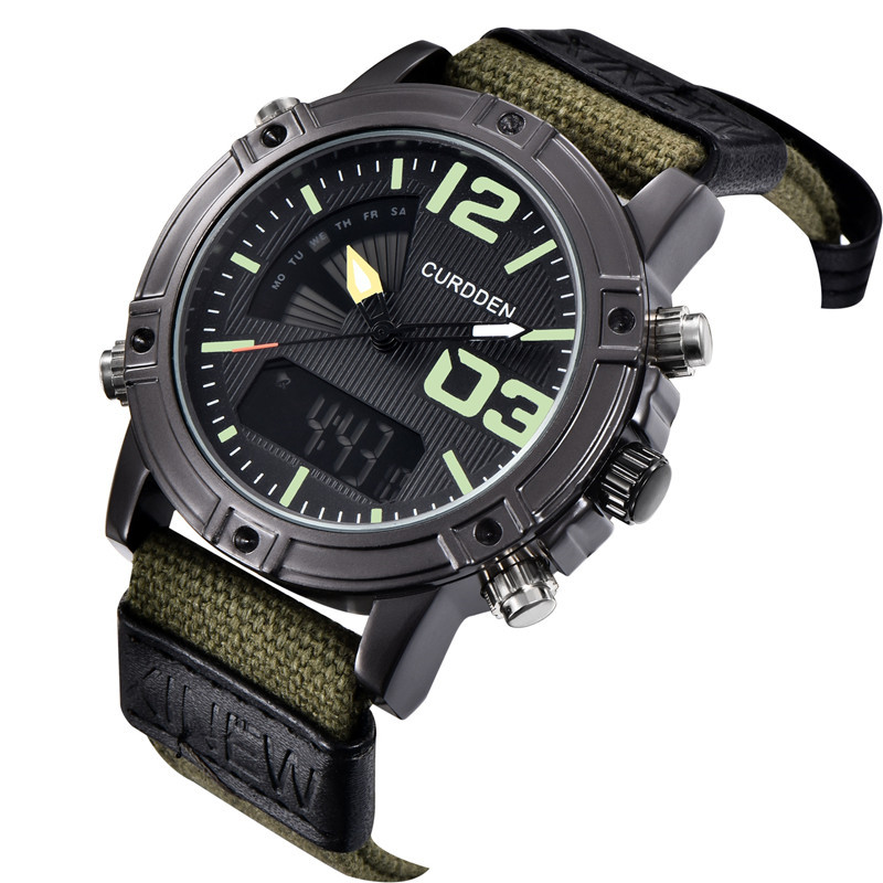 CURDDEN brand men's watch nylon strap men's sports new dual display watch