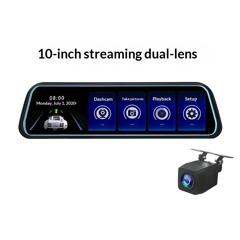 10inch Streaming Media Dash Cam HD Night Vision Mirror Front And Rear Dual Lens Car Rearview Camera