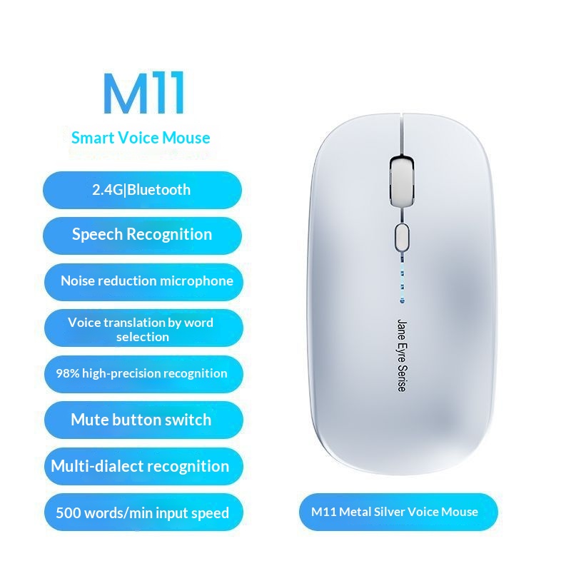 Brand:EWEADN/Forward Runner,Item Number:M11,Time to market:2023.7.17,Type:Bluetooth Mouse,Mouse size:Ordinary mouse 100-120mm,Connection method with a computer:2.4G+Bluetooth,Compatible Models:Laptop,Optical resolution:1600dpi,Number of Buttons:2,Interface:USB,Wireless Transmission Frequency:2.4GHz,Does it support ergonomic design?:Support,Adjustable resolution:Three-speed and below,Operating distance:10,working method:Optical,Direction of the scroll wheel:Touch Control Scroll Wheel,Long cable length:0,Product Dimensions:121.5*63.5*35.5mm,Product weight:0.0845KG,Custom Printing:Not possible,After-sales service:Storefront Three Guarantees,Package contents list:Mouse, Receiver,Color:Silver White-[AI Voice Recognition]-Bluetooth Dual Mode,We have authorized private labels available:No,Is it exclusively for cross-border export supply?:No,Customizable:Not supported,Is it a patented source product?:No,Power supply mode:Comes with a charger
