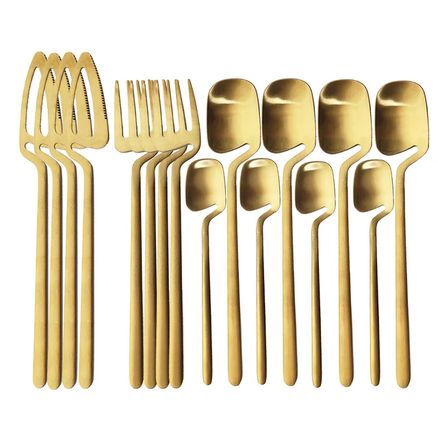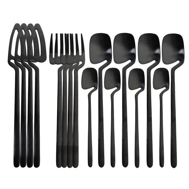16pcs Black Dinnerware Sets Kitchen Decor Spoon Fork Knife Tableware Set Matte Gold Cutlery Ice Cream Desserts Soup Coffee Use