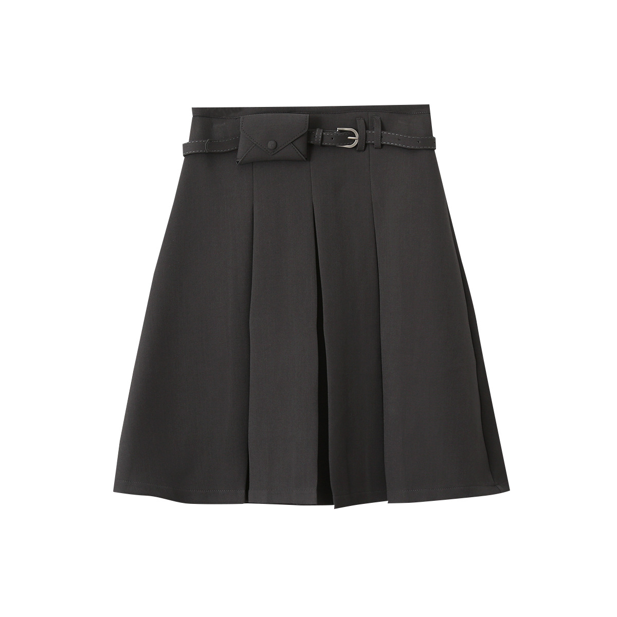GraceChic GraceChic GraceChic Unlock Layered Sense Oufan Academy Style Pleated High Waist Dark Gray Half For Women Autumn Five-Point Skirt 3198