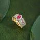Italian Textured Gold-Plated Lace Edge Two-Tone Gold Inlaid Diamond Emerald Gemstone Ring, Same Style as Bologna Boutique