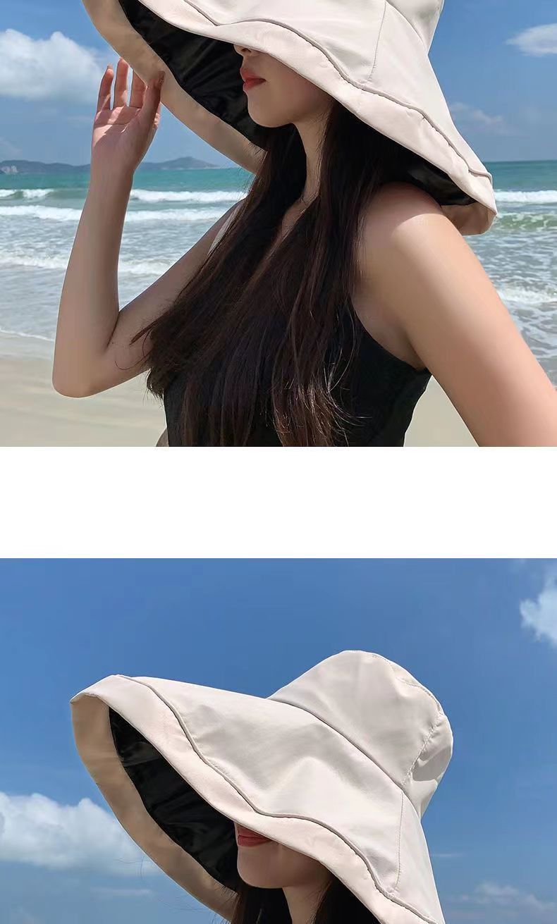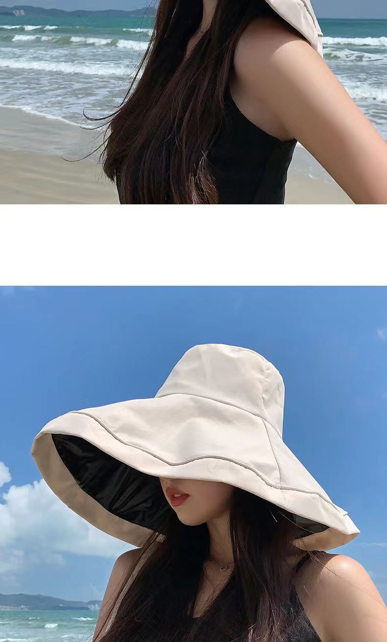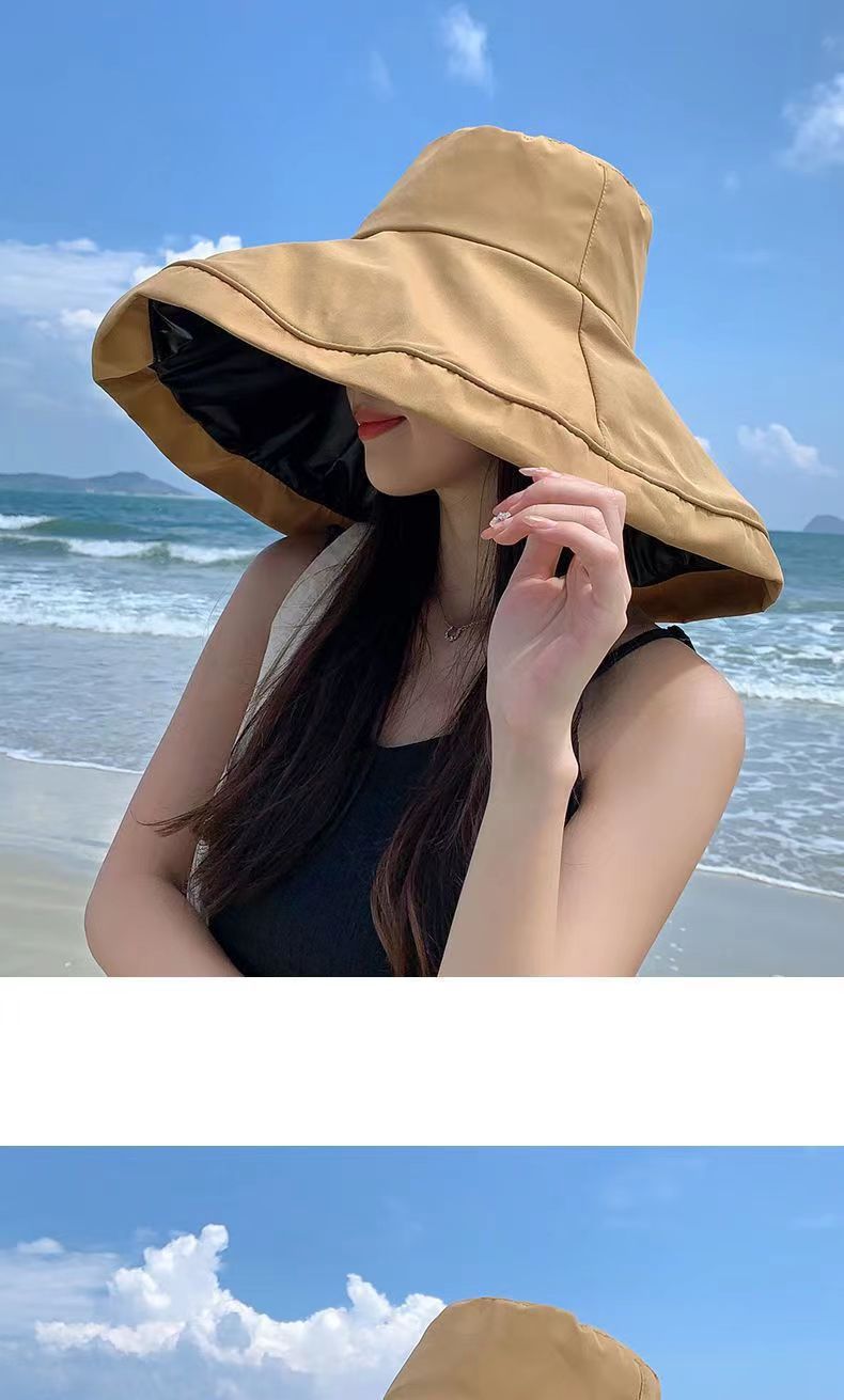Long Brimmed Black Rubber Fisherman Hat with A Face Covering and Sun Protection Hat for Women's Summer UV Protection Hat Foldable Sun Hat