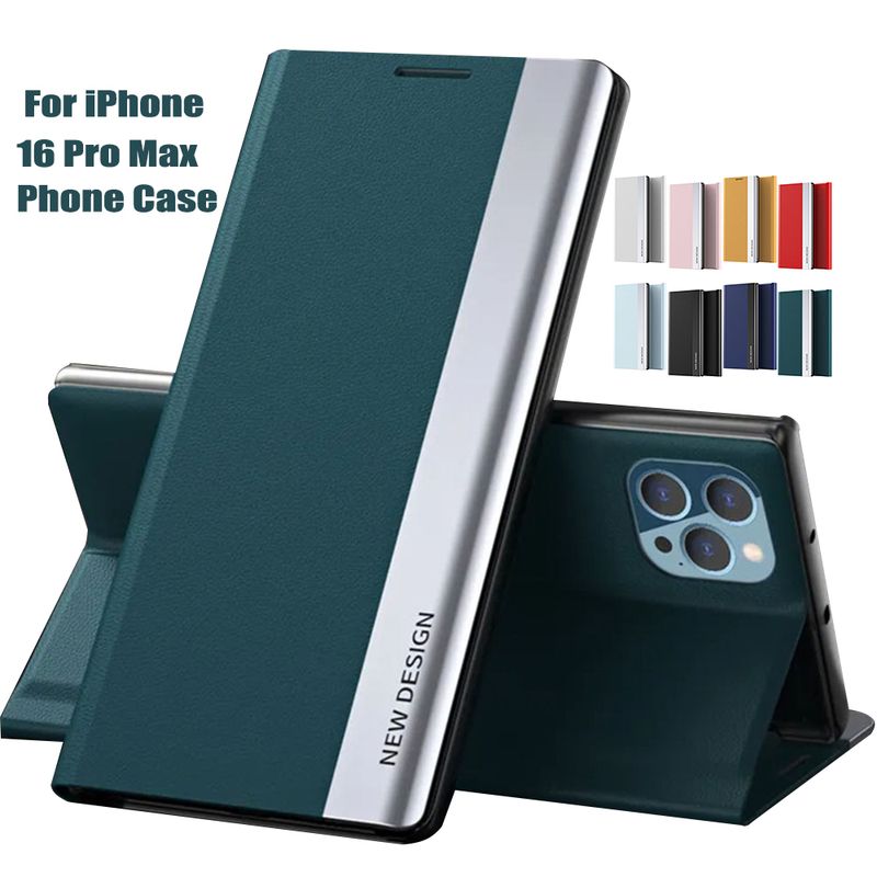 Leather Flip Stand Holder Phone Case For IPhone 16 15 14 13 12 11 Pro Max Luxury Back Cover For IPhone 16 15 14 Plus XR X XS Max