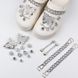 Luxury Designer Silvery Butterfly Shoe Charms Pearl Chain Fits For Clog Sandal Premium Bling Rhinestone Jewelry