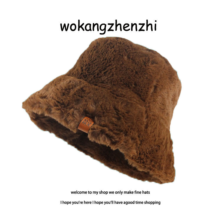 Men's Hats Sweet And Cute Bucket Hat Leopard Plush Fisherman Hat Warm Thickened Basin Hat