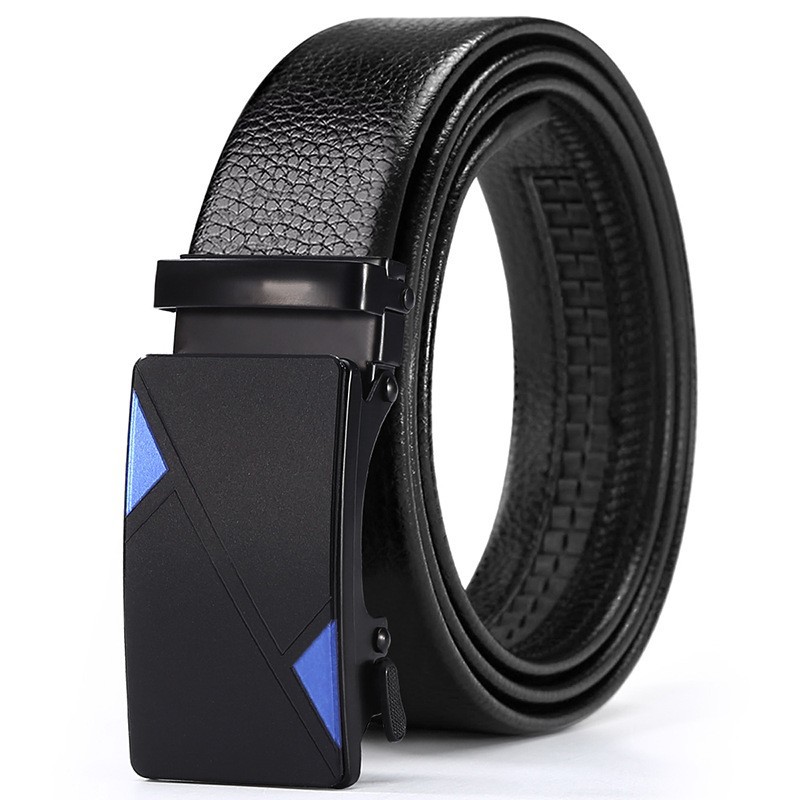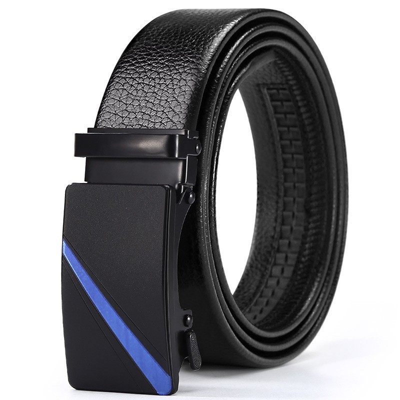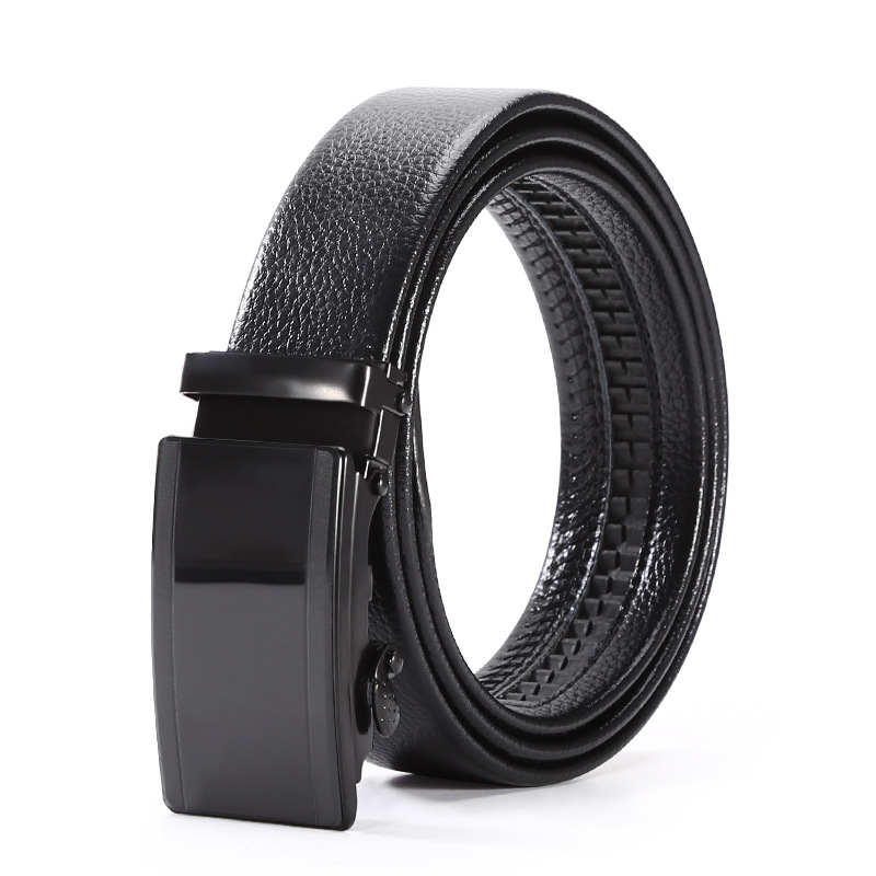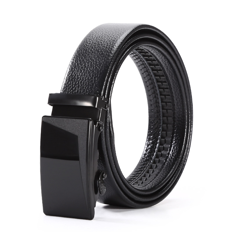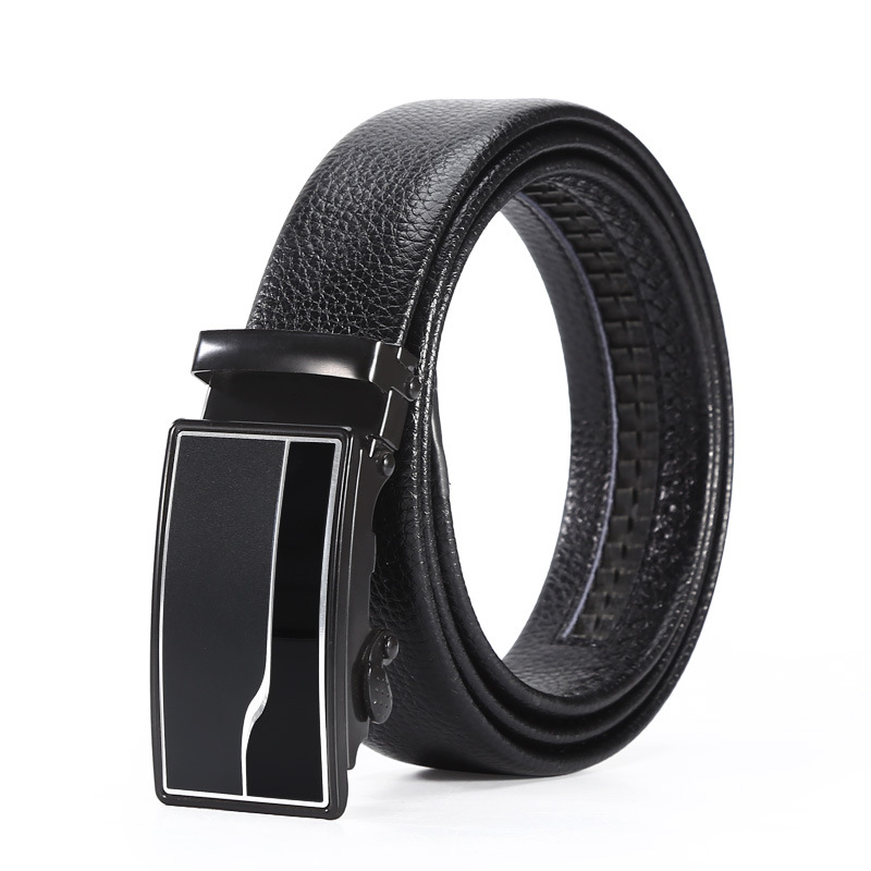 New Hot Selling Versatile Men's Automatic Buckle Belt with Black Litchi Pattern Full Bonded Edge for Men's Casual Belt with Versatile Temperament