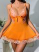 New Lingerie Women's Lace Mesh Bow Nightdress Pajamas Sexy Set