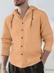 New Spring Summer Men Hooded T-shirt Shirt Solid Color Cotton Linen Men's Casual Long Sleeve Tops