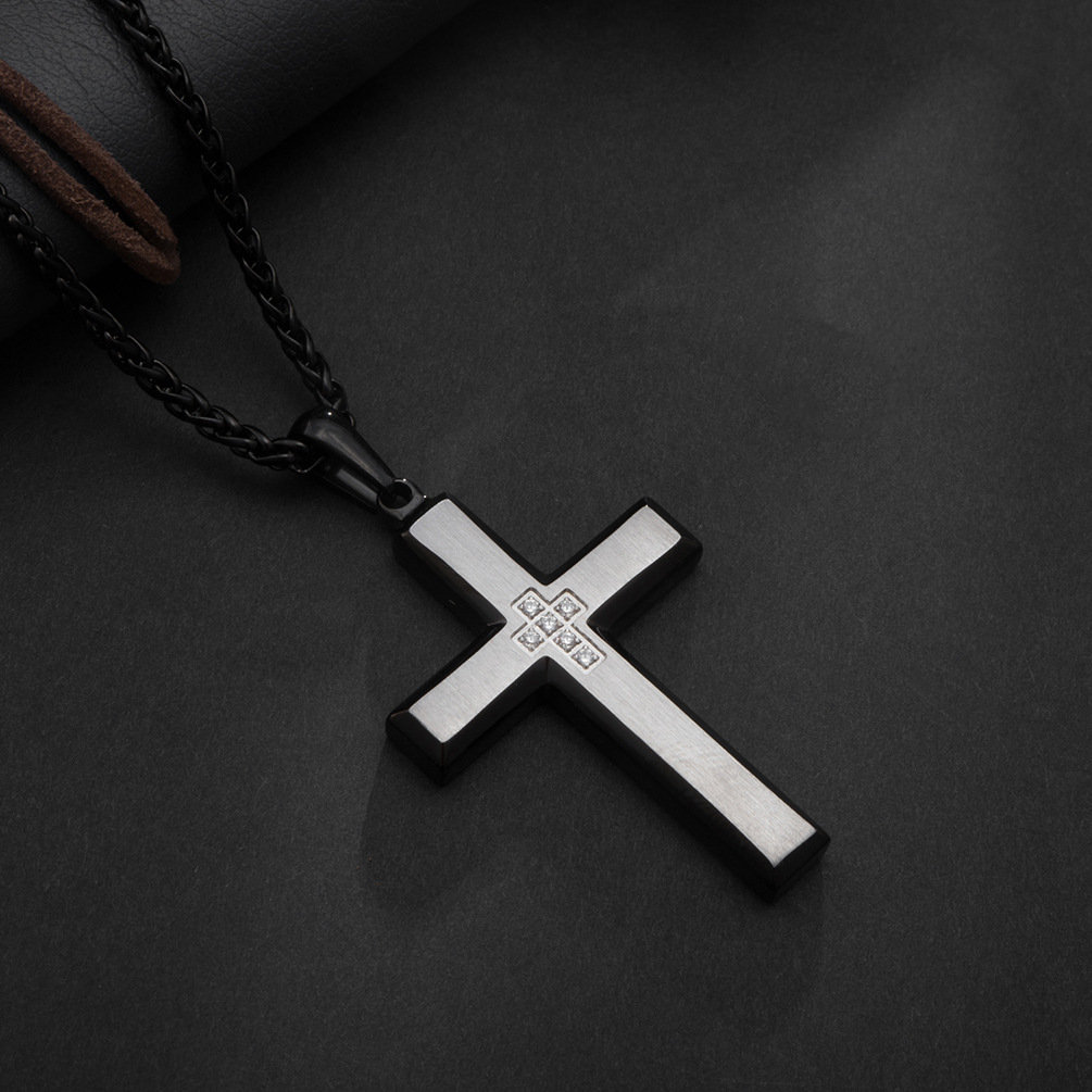 New Stainless Steel Men's Necklace Pendant with Diagonal Edge Clothing Cross for Men and Women's Couple Pendant Accessories