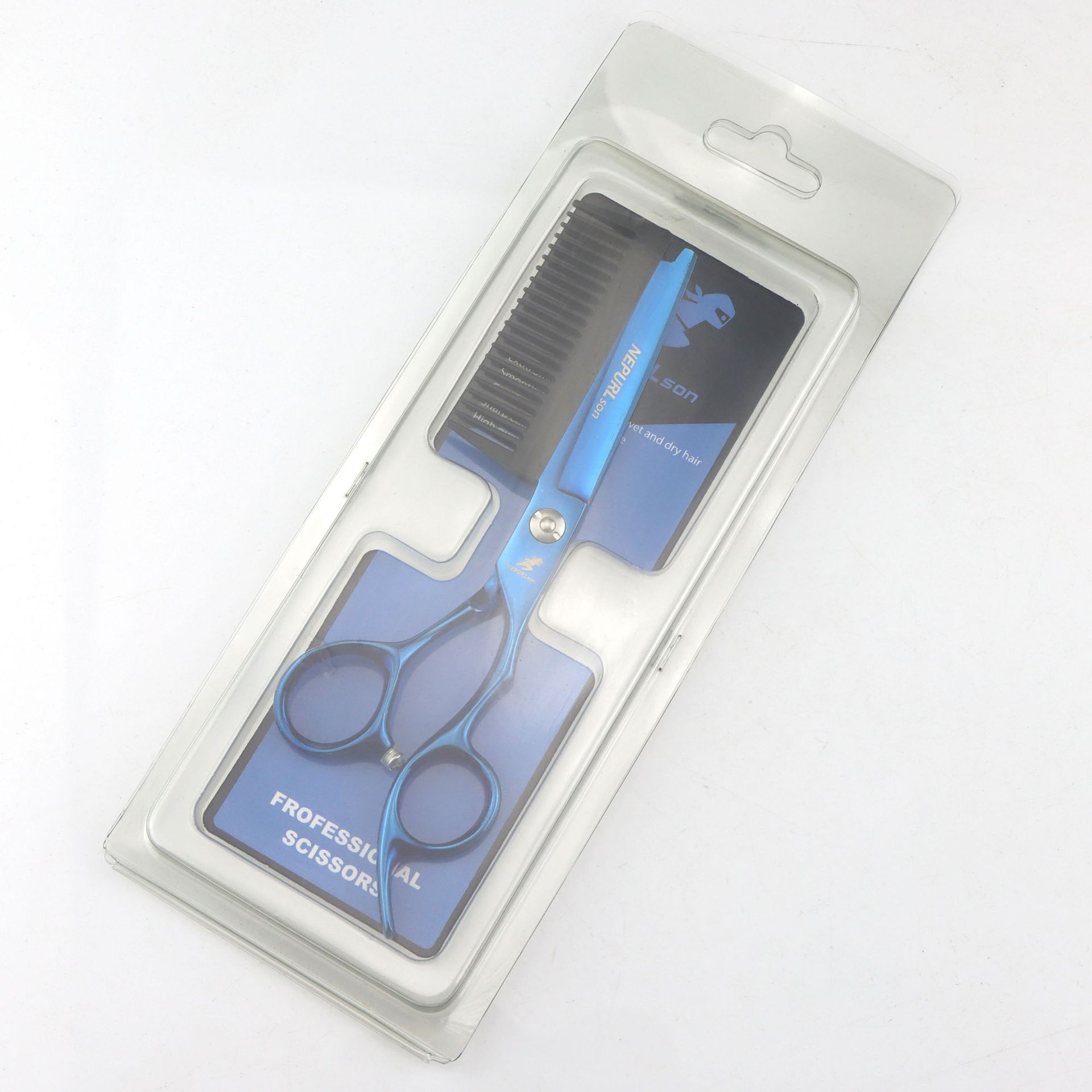 6.0inch Colorful Comb Personalized Hairdressing Haircut Flat Bangs Scissors With Packaging