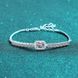 S Sterling Silver Handcrafted Mosang Stone Bracelet, Women's Rectangular Chamfered Edge Wrapped Diamond, Sapphire Blue