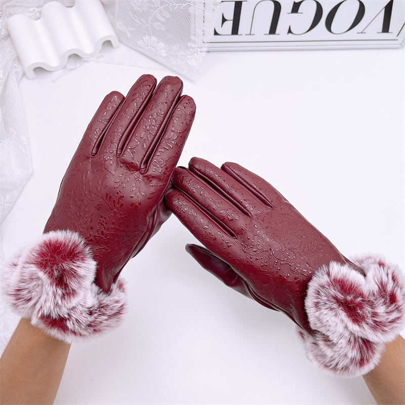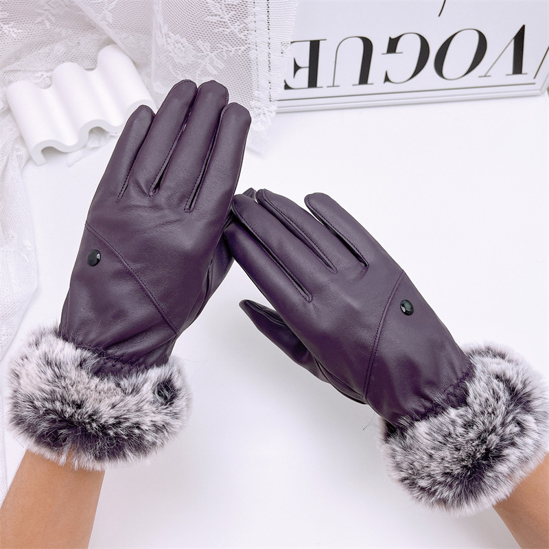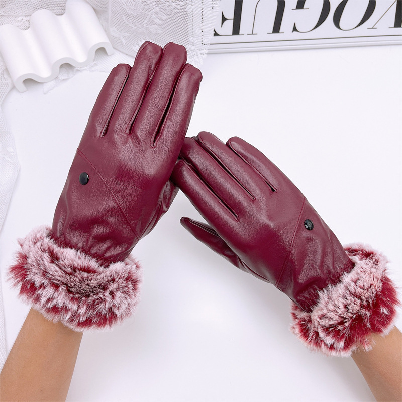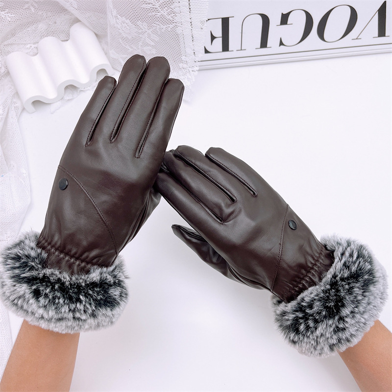 Simple casual leather gloves women's autumn and winter outdoor riding touch screen gloves fleece warm PU gloves