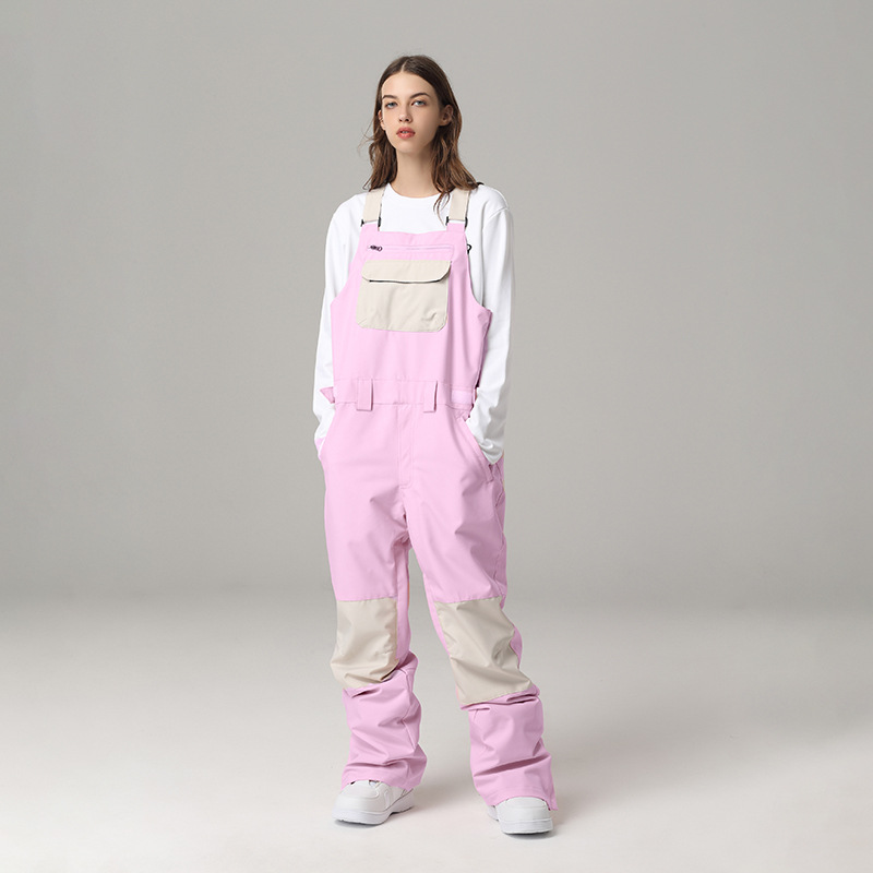 Snowy Style Single Board Strap Pants Windproof Waterproof Color-Block Suit One-Piece Unisex Outdoor Ski Gear