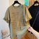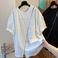 Women's Clothing new loose embroidery pure cotton heavy short-sleeved T-shirt female zipper split top