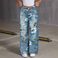 Women's Floral Print Straight Leg Jeans – Boho Chic Cotton-Blend Trousers (S/M/L/XL/XXL, Non-Stretch, Mid-Rise, Machine Washable)