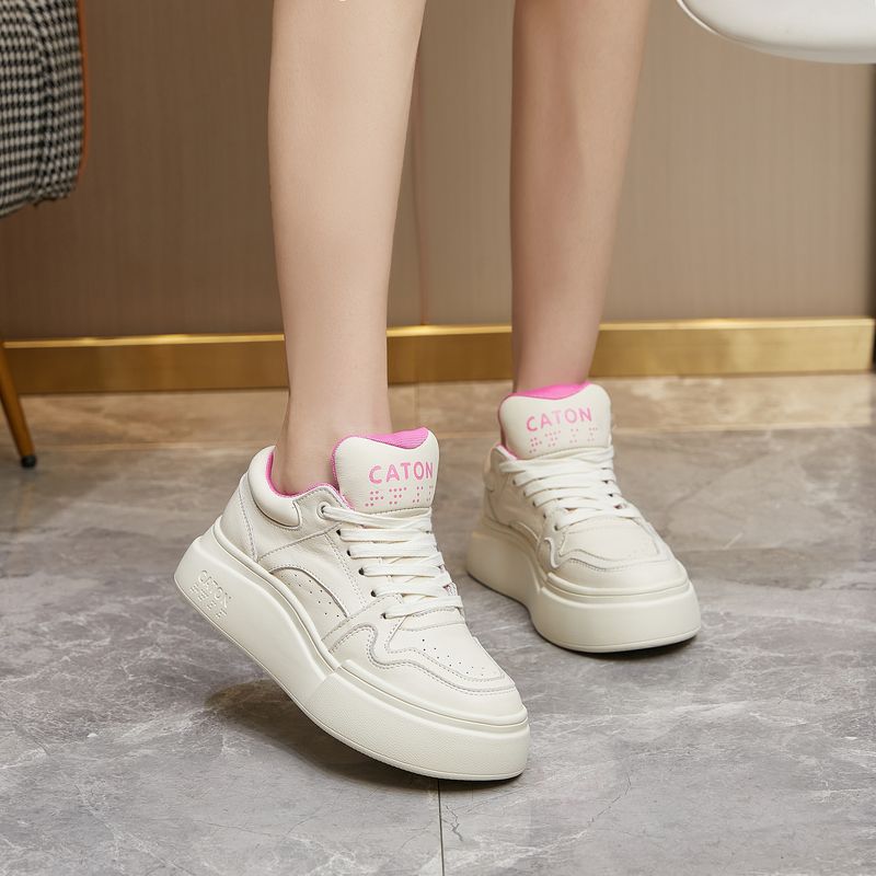 Women's New Genuine Leather Soft Thick Sole White Breathable Casual Versatile Dad Shoes Patchwork Color-Block Sneakers